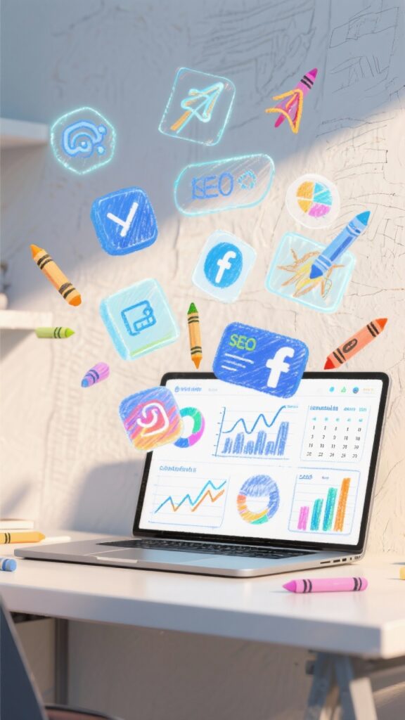 A full set of online tactics that support brand awareness, lead generation, and customer growth. This covers content creation, social media management, email outreach, SEO, and analytics. It works through steady planning, long-term strategy, and tracking user behavior across devices.